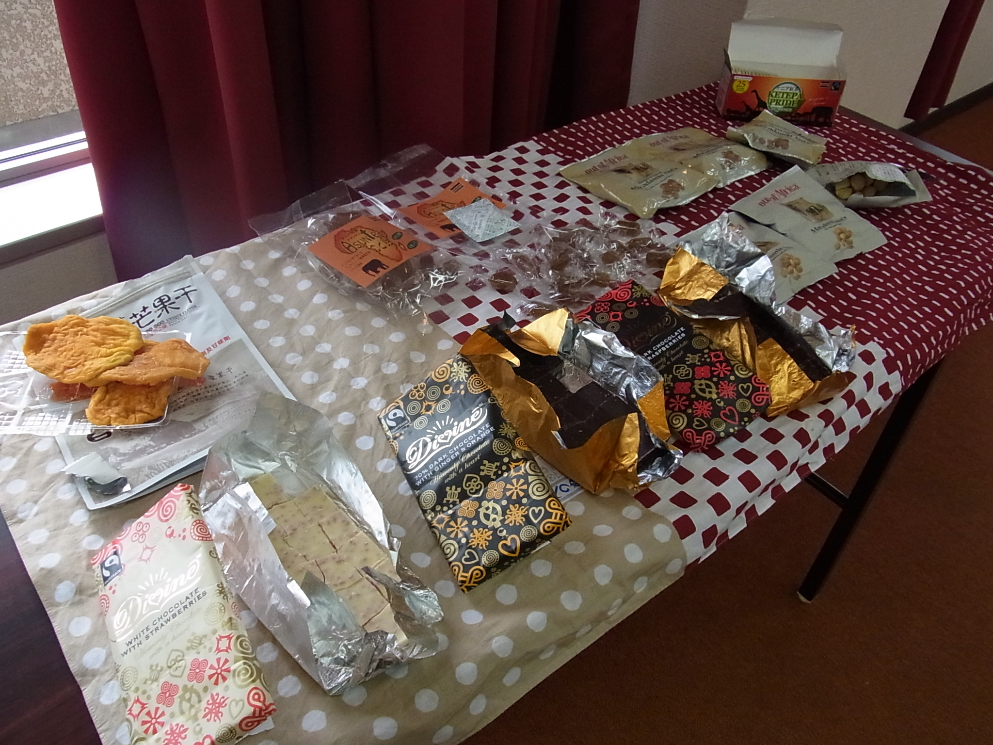 昨年の12月1日(土曜日)に開催した、平成24年度第2回交流会では、フェアトレードのおいしい食べ物たちが、並んでいました。